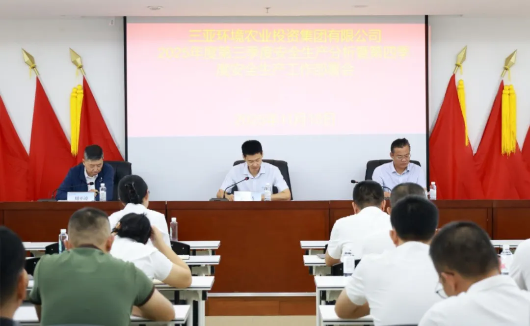 为深入贯彻落实习近平总书记关于清静生产和防灾减灾救灾的主要指示精神,,,,周全总结第三季度清静生产事情,,,,剖析目今清静形势,,,,安排第四序度重点使命,,,,11月13日,,,,三亚环农集团党委副书记、总司理孙涛涛在集团八楼聚会室主持召开2025年第三季度清静生产剖析暨第四序度清静生产事情安排聚会。。。。。集团相关部分及子公司清静生产分担认真人、清静治理职员加入聚会。。。。。
